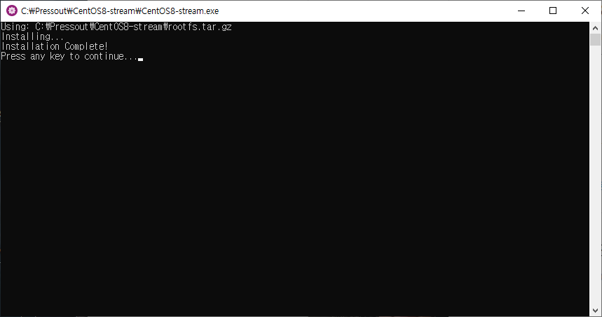 추가 (2021-04-13) : 디렉토리를 접근할 수 있는가 보려고 했더니, 일반 배포본들의 linux 디렉토리는 windows 디렉토리 상에 그냥 존재하고 있는 것에 비해 CentOS8-stream 이녀석은 qcos2 이미지를 기반으로 만들어져서, CentOS8-stream.exe 파일을 실행한 디렉토리에 생성된 ext4.vhdx 파일을 마운팅하여 linux 디렉토리를 구성한다. 그래서 linux에서 생성한 파일들을 바로 windows 디렉토리에서 확인하고 싶으면 /mnt/c 의 임의의 디렉토리를 symbol link로 원하는 디렉토리를 연결해두거나 (/home 같은), 원할때 수동으로 카피하는 편이 편할듯. /mnt/c 의 디렉토리들은 권한이 무조건 모두 허용되도록 강제되는것 같아, /home 에 연결하는건 좀 아닌듯. vhdx는 원할때 컨버팅하여 window 상에서 읽는 방법이 있는듯 하여, 일단은 현 상태로 써보기로...